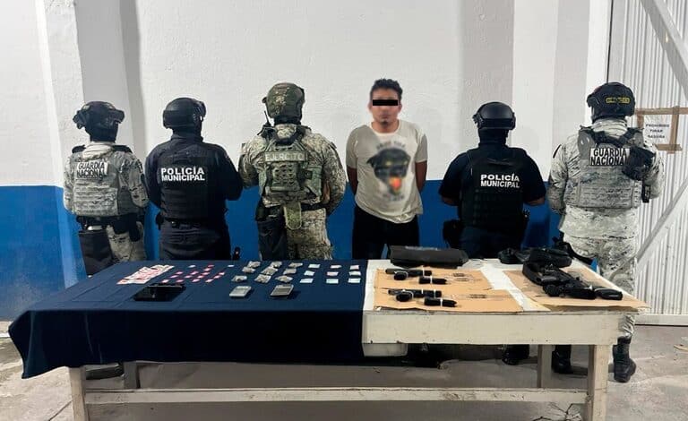 En Tabasco, la Guardia Nacional detuvo a una persona con armas, drogas y otras cosas ilegales. Fue en Paraíso, cuando vieron a dos personas que huyeron al notar la presencia de las autoridades. Lograron detener a uno de ellos y encontraron lo siguiente: armas, cartuchos, drogas como metanfetamina, cocaína, marihuana y LSD, balanzas metálicas y una motocicleta. Al detenido se le informaron sus derechos y fue llevado con lo decomisado a la Agencia del Ministerio Público Federal para seguir con la investigación. La Guardia Nacional sigue comprometida en cuidar a todos los ciudadanos, trabajando para mantener la paz y seguridad en el país.