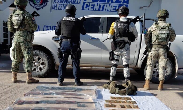 En Chihuahua, las autoridades de seguridad aseguraron varios rifles, armas cortas y cartuchos dentro de un vehículo reportado como robado. Esto sucedió después de recibir un aviso sobre un auto mal estacionado en la carretera Chihuahua-Ojinaga, municipio de Aldama. La Guardia Nacional y el Ejército Mexicano acudieron al lugar, inspeccionaron el vehículo y encontraron 4 rifles, 2 armas cortas y 520 cartuchos de diferentes calibres. Todo lo encontrado, incluyendo el vehículo robado, fue llevado a la Agencia del Ministerio Público Federal para dar seguimiento a las investigaciones. La Guardia Nacional reitera su compromiso de prevenir el transporte y distribución de sustancias que puedan perjudicar la salud de las personas.
