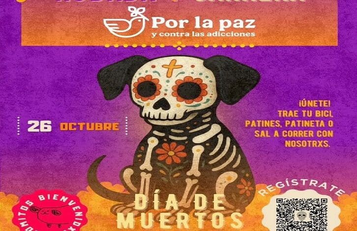 El Instituto Mexicano de la Juventud (IMJUVE) invita a jóvenes de todo México a participar en la segunda edición de la Rodada y Carrera por la Paz y Contra las Adicciones, que este año tendrá como tema el Día de Muertos. El evento se llevará a cabo del 24 al 26 de octubre en los 32 estados del país, con más de 300 actividades al mismo tiempo. Se espera la participación de más de 400 mil jóvenes, acompañados de sus familias, amigos e incluso sus mascotas.