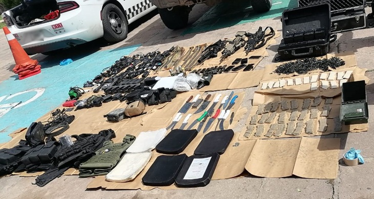 En Durango, la Guardia Nacional detuvo a tres sospechosos de pertenecer a un grupo delictivo y confiscó un arsenal. Los guardias nacionales notaron una camioneta con vidrios oscuros y al detenerla descubrieron armas y equipo militar, incluyendo armas de fuego, granadas, chalecos tácticos, drones, comunicadores, celulares y cuchillos. Los detenidos fueron informados de sus derechos, registrados y llevados con el armamento y vehículo a la Agencia del Ministerio Público Federal para más investigaciones. La Guardia Nacional sigue comprometida en proteger a la gente y colaborar con el Gobierno de México para garantizar la paz y la seguridad.