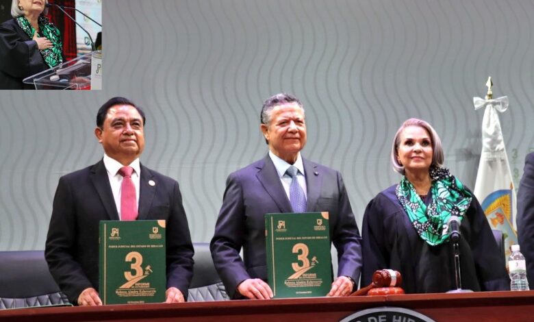 La Magistrada Presidenta del Tribunal Superior de Justicia de Hidalgo, Rebeca Aladro Echeverría, presentó su Tercer Informe de Actividades en un evento con autoridades y representantes de la comunidad. Destacó avances como la modernización de procesos judiciales y la implementación de un nuevo código. También resaltó la coordinación con otros poderes y la sociedad para fortalecer el Estado de Derecho. Se mencionó la importancia de escuchar y apoyar a quienes trabajan en el Poder Judicial, con acciones como la aplicación “Platica con la Presidenta” y programas de bienestar. Se hizo hincapié en la administración responsable de recursos para mejorar la calidad de los servicios judiciales y la confianza de la ciudadanía. Además, se destacaron acciones en igualdad de género, protección de la niñez, fortalecimiento de la justicia alternativa y derechos humanos. Se enfatizó la formación judicial, la transparencia y rendición de cuentas, así como el agradecimiento al personal por su trabajo. La Magistrada expresó el compromiso de seguir avanzando en la justicia de manera sólida y con una visión de futuro.