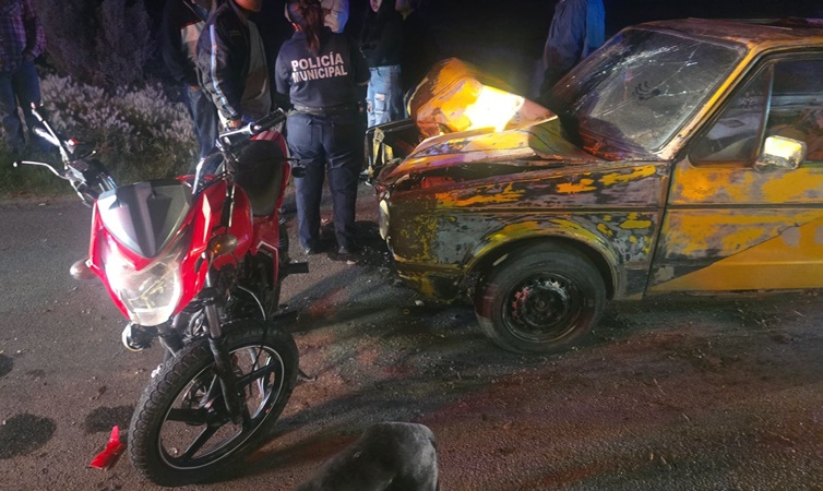 Dos menores chocaron contra un auto en la carretera que une Zapotlán y Tolcayuca. Ocurrió en la noche, cerca de la presa Huatongo en Zapotlán. Los menores iban en una moto roja y chocaron contra un Volkswagen. Afortunadamente, los menores salieron ilesos. El auto sufrió daños en la carrocería. No se han dado a conocer los nombres de los menores. Tuvieron que llegar a un acuerdo para arreglar los daños.