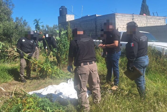 La Fiscalía General de la República en Hidalgo llevó a cabo un cateo por cultivo de marihuana en Jagüey de Tellez, Zempoala. Fueron incautadas 237 plantas y el inmueble quedó bajo custodia. Se destacó la colaboración entre distintas autoridades en esta acción. La Fiscalía continúa sus investigaciones y anima a la ciudadanía a denunciar delitos federales al correo o teléfono de contacto proporcionados.
